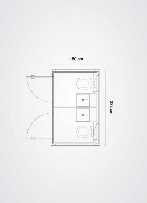 Cube in versione compatta in grado di ospitare due stanze da bagno complete. Funzionale ed effeciente, contiene due stanze dotate entrambe di wc e lavabo.